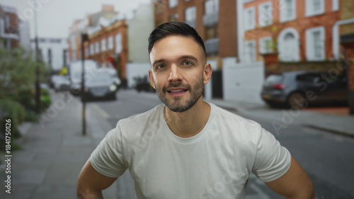 man, young, urban, street, city, adult, portrait, modern, confident, happy, smile, casual attire, fashion, daylight, expression, summer, lifestyle, brick, vehicle, pavement, weather, sunlight, person, building, scenic, suburban, relaxed, journey, positive, dynamic, bright, travel, destination, modernity, wander, sidewalk, residential, cheerful, enjoy, attractive, photogenic, morning, road, culture, diverse, explore, bustle, movement