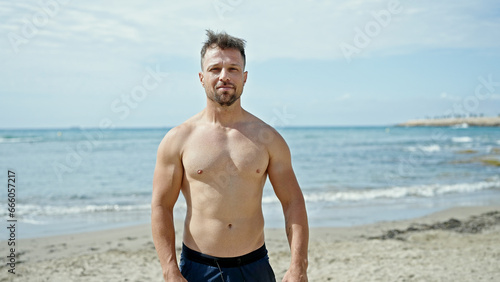 young, hispanic, man, guy, beard, adult, person, portrait, photogenic, attractive, lifestyle, expression, standing, sunlight, sunny, fashion, casual attire, summer, swimwear, swimwear, body, travel, vacation, holiday, holiday maker, tour tourism, naked, shirtless, serious, relaxed, condensed, sea, outdoors, exterior, nature, ocean, beach, promenade, water