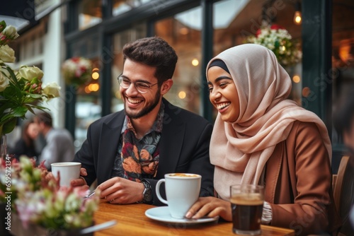 young muslim friends laughing over coffee