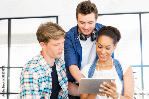 Young office workers discussing