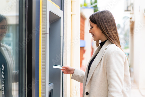 Young pretty woman using an ATM