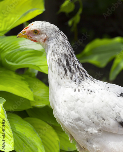 animal, bird, rooster, farm, poultry, white, chicken, agriculture, feather, rural, cockerel, farm animal, beak, scene, domestic, nature, hen, baby, freedom, comb, closeup, young, colours, pet, green, grass, village, 1, flock, female, garden, pasture, formal, outdoors, farmer, red, field, head, crest, healthy, growth, pullet, looking, environment, flowerbed, eye