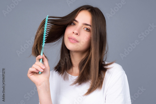 hair, comb, combing, woman, young, woman, healthy, shiny, isolated, studio, pretty, concept, model, cosmetic, face, portrait, female, girl, hair dress, haircut, hairdresser, caucasian, copy space, lady, attractive, hair care, coiffure, smiling, head, brunette, haircutter, beauty, charming, brown, hairstylist, smile, positive, hair salon, coiffure, coiffure, care, grey, keratin, people, hairbrush, frizzy, hair salon, beautiful, sensual