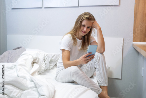 bed, woman, bedchamber, home, smartphone, female, sleep, chatting, young, night, lifestyle, beautiful, people, person, adult, sleepy, using, room, happy, pillow, white, caucasian, day, indoor, bedtime, arousing, apartment, concept, indoor, relax, rest, comfortable, happiness, health, relaxation, cute, healthy, leisure, time, awake, portrait, attractive, house, smiling, sleepy, clock, evening, technology, mobile
