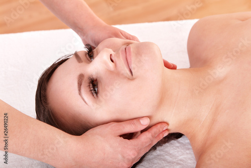 Young woman having head massage.
