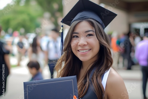 graduation, graduate, diploma, achievement, education, success, celebration, smile, smiling, proud, ceremony, cap, gown, academic, university, college, joy, milestone, day, happy, happiness, scholar, campus, student, school, event, accomplishment, portrait, young, female, woman, tradition, goal, achiever, real people, diversity, equity, equality