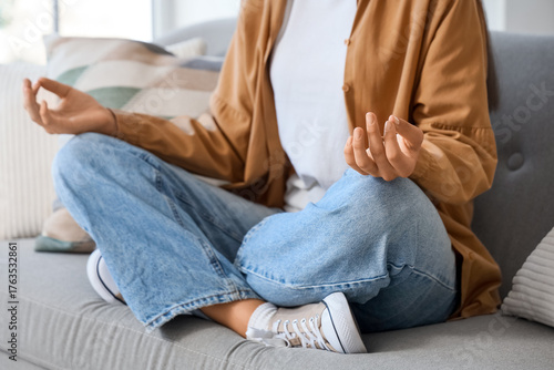 closeup, concept, home, meditating, sofa, woman, young, zen, adult, asana, aura, background, balance, body, buddhism, calm, care, caucasian, chakra, condensed, divine, energy, nirvana, female, girl, guru, happy, harmony, health, hinduism, indoor, karma, lifestyle, lotus, mantra, meditation, mental, metaphysical, mind, nirvana, peace, people, person, relax, sitting, soul, yoga