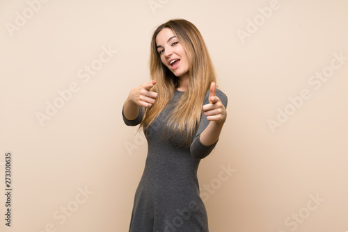 girl, woman, woman, people, person, lady, female, attractive, beauty, young, adult, caucasian, cool, pretty, beautiful, background, wall, isolated, pointing, front, you, want, happy, portrait, expression, point, concept, gesture, smiling, looking, finger, view, success, smile, choose, hand