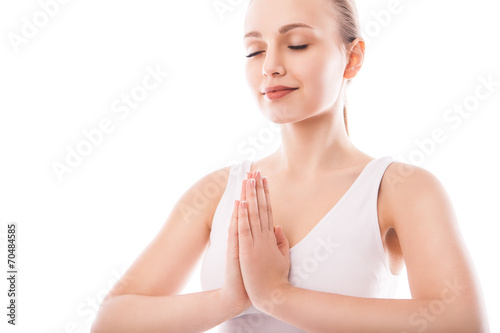 yoga, woman, white, fitness, female, young, girl, relax, health, meditation, relaxation, isolated, human, peace, happiness, adult, lotus, people, caucasian, zen, lifestyle, body, beauty, beautiful, background, exercise, model, sitting, concept, studio, portrait, lady, healthy, person, meditate, peaceful, pretty, leg, floor, cross-legged, 1, eye, position, crossed, blond, happy, sexy, energy, fresh, closed