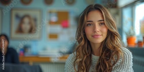 Young Woman with Long Brown Hair in an Indoor Setting