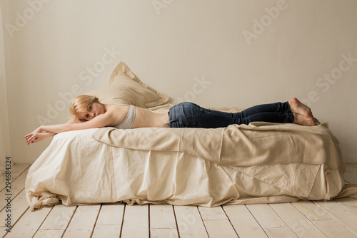 relaxing, blond, relaxation, relax, real, pure, pillow, pastel, nakedness, minimal, jean, inside, indoor, ginger, female, dreaming, caucasian, body, bedchamber, bed sheet, bed, short hair, beauty, missy, beautiful, young, back, woman, white, underclothing, 20s, topless, thinks, tattoo, simple, sheet, room, rest, girl, person, people, adult, adult, 20s, young adult, young adult, young person, grown-up