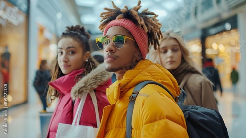 youthful, fashion, shopper, vibrant, winter, attire, mall, stylish, teenage, trendy, colourful, urban, jacket, group, friends, shopping, indoor, person, cool, relaxed, fashionable, diversity, casual attire, happy, retail, leisure, outing, sunglasses, backpack, hipster, modern, lifestyle, accessory, clothing, socialising, browsing, confident, contemporary, togetherness