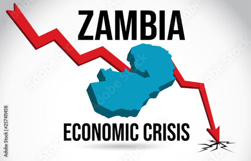Zambia Map Financial Crisis Economic Collapse Market Crash Global Meltdown Vector.