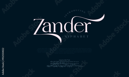 Zander swash luxury elegant alphabet letters and numbers. Vintage wedding typography classic serif font decorative vintage retro. creative vector illustration