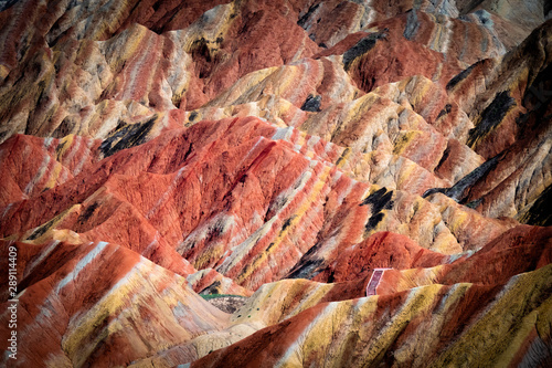 Zhangye Danxia, rainbow mountains China, Gansu province. Chinese landscape with beautiful geological layers in the hills. Unique Chinese landscape.