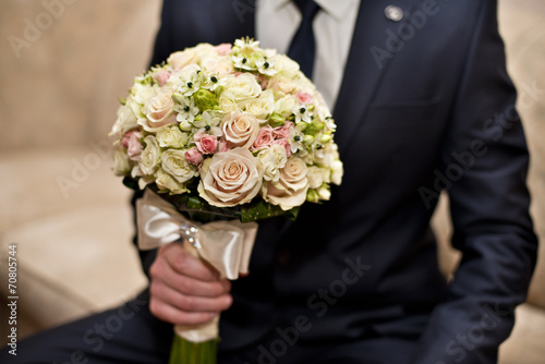 Жених со свадебным букетом