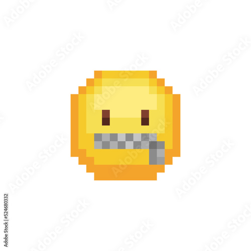 Zipper-mouth face. Cartoon character. Pixel art style. 8-bit style. Isolated abstract vector illustration.